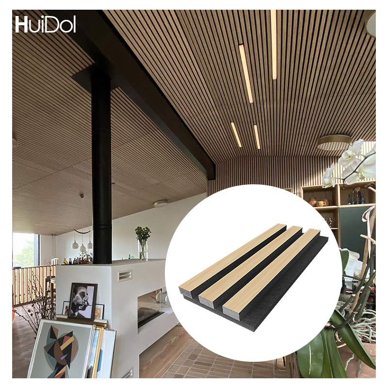 Paneles acústicos de nogal de roble Natural Huidol para sala de música 600mm Panel de insonorización de pared de absorción de sonido Mdf aislamiento de sonido